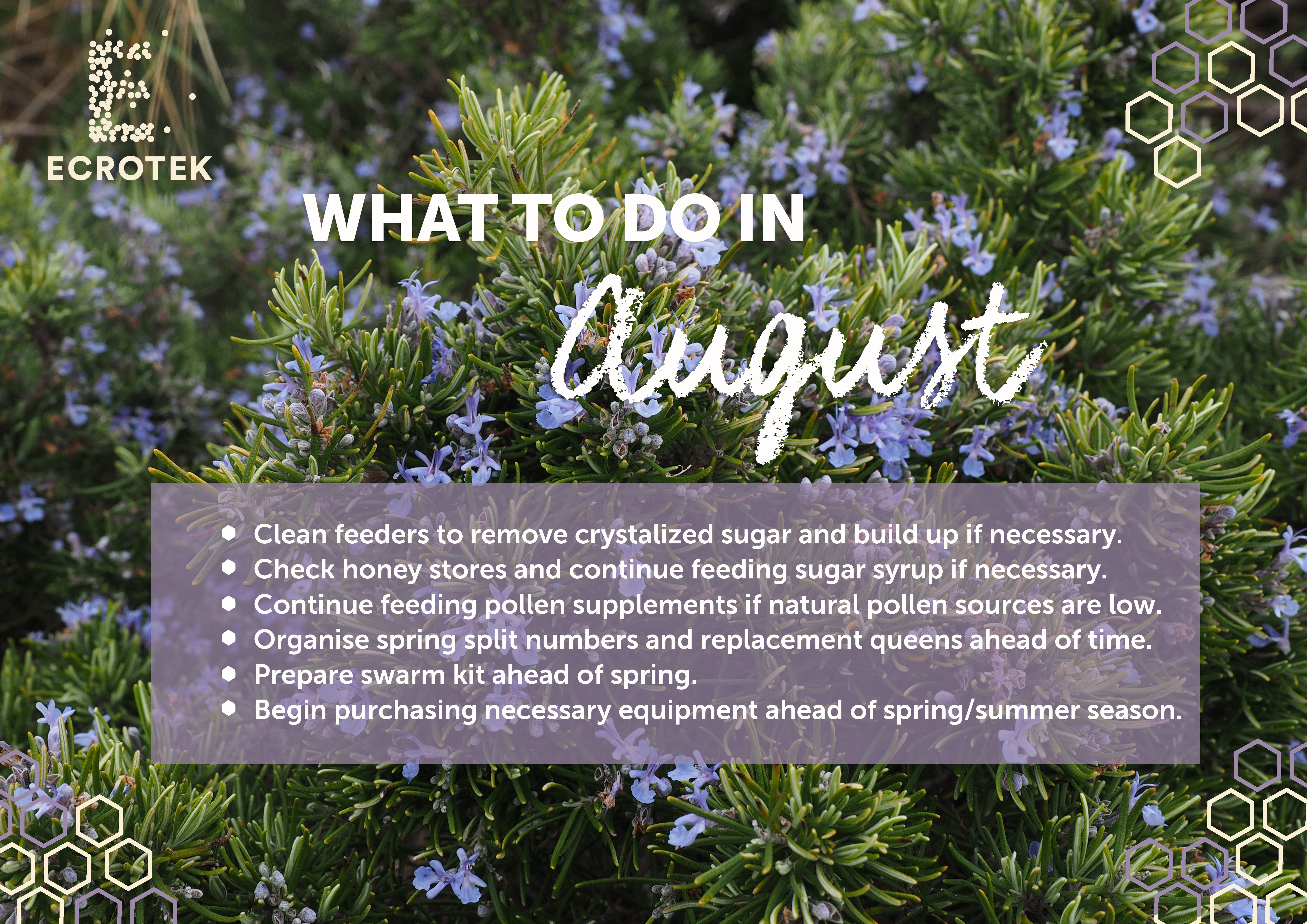 Check out this What to do in August poster, designed to help keep you on track with hive management and monthly tasks.