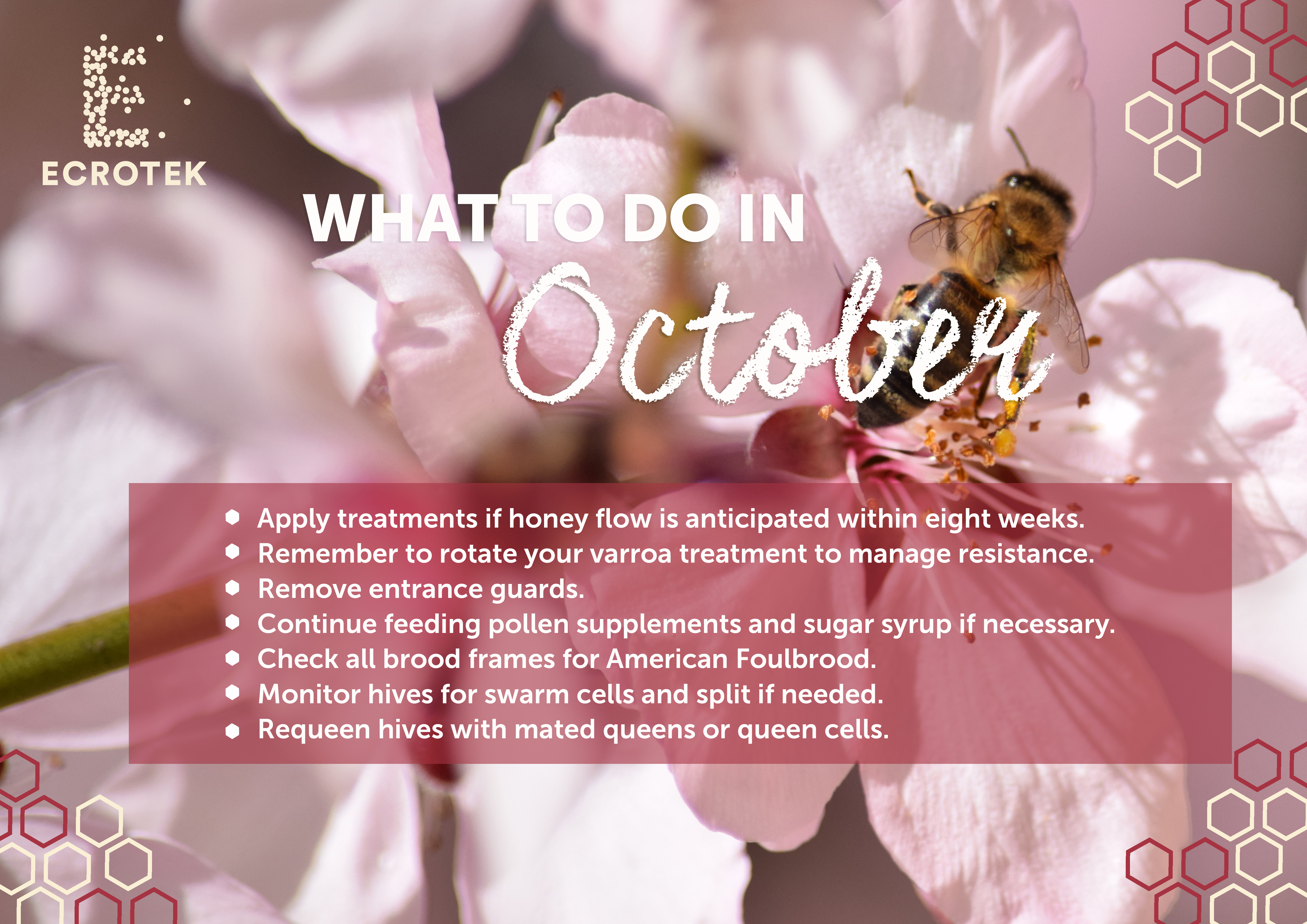 Check out this What to do in October poster, designed to help keep you on track with hive management and monthly tasks.