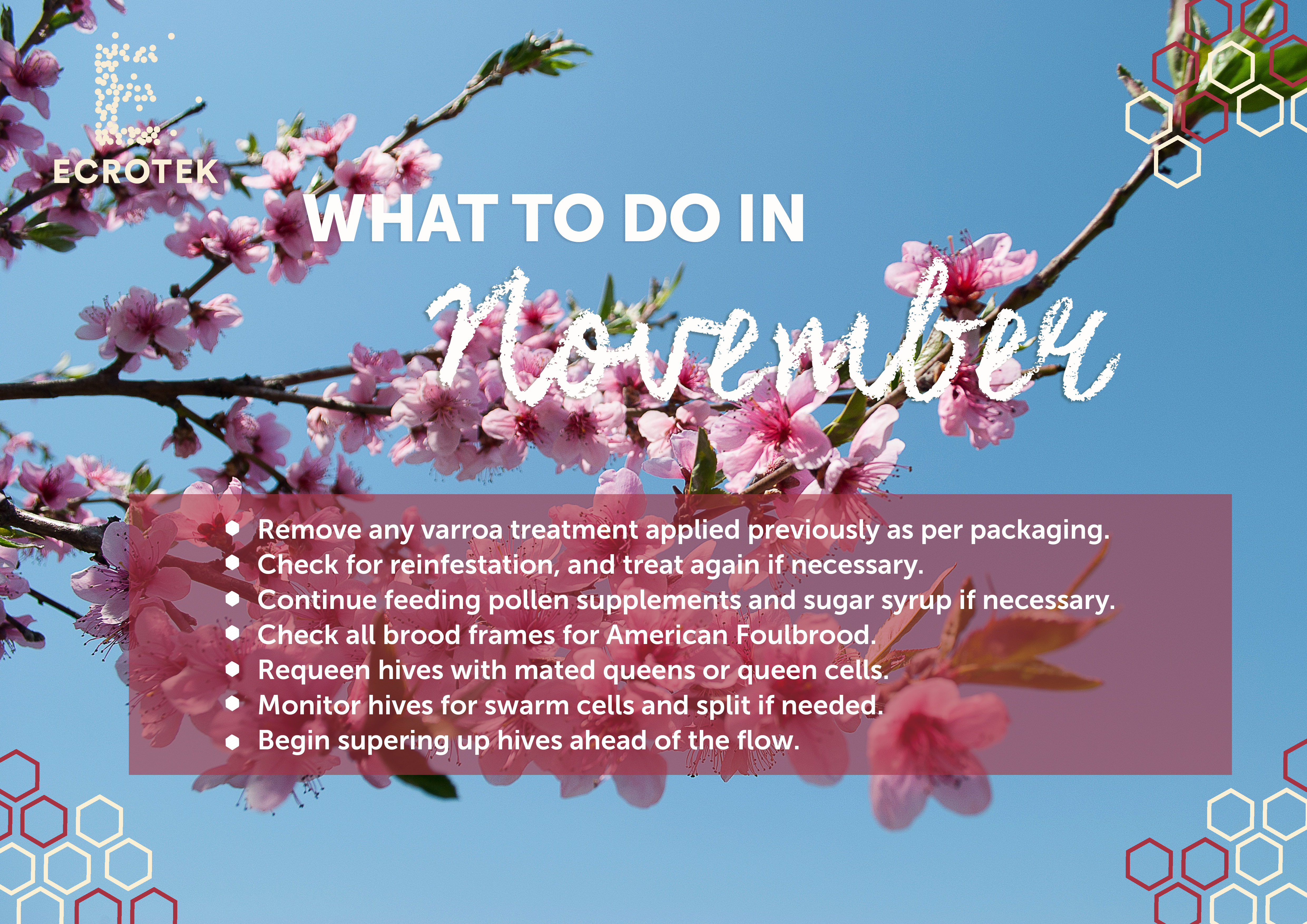 Check out this What to do in November poster, designed to help keep you on track with hive management and monthly tasks.