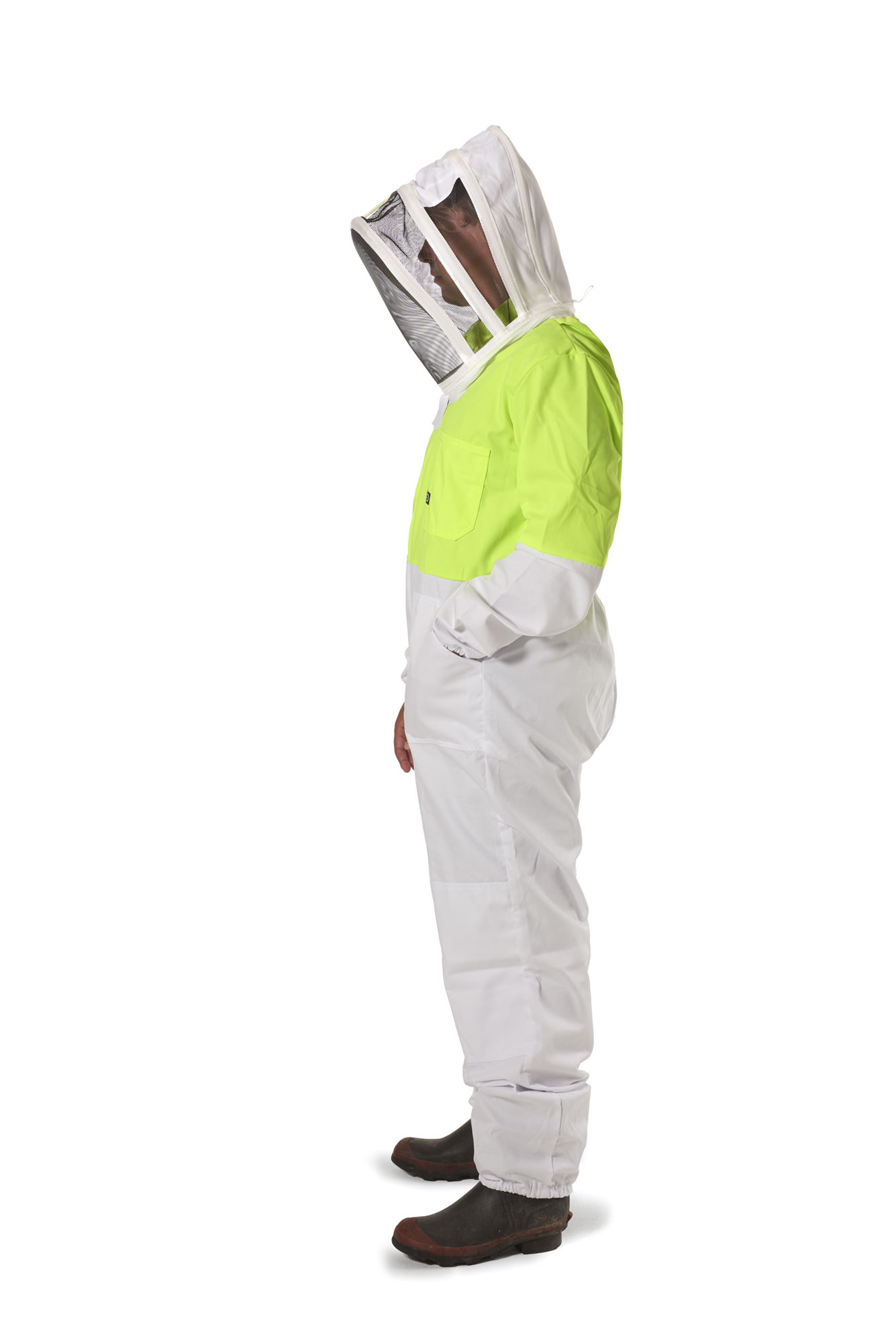 - This bee suit is 65% polyester 35% cotton drill 240gsm - great if you want to be sure you'll be seen out in the field whilst staying protected from any feisty bee's