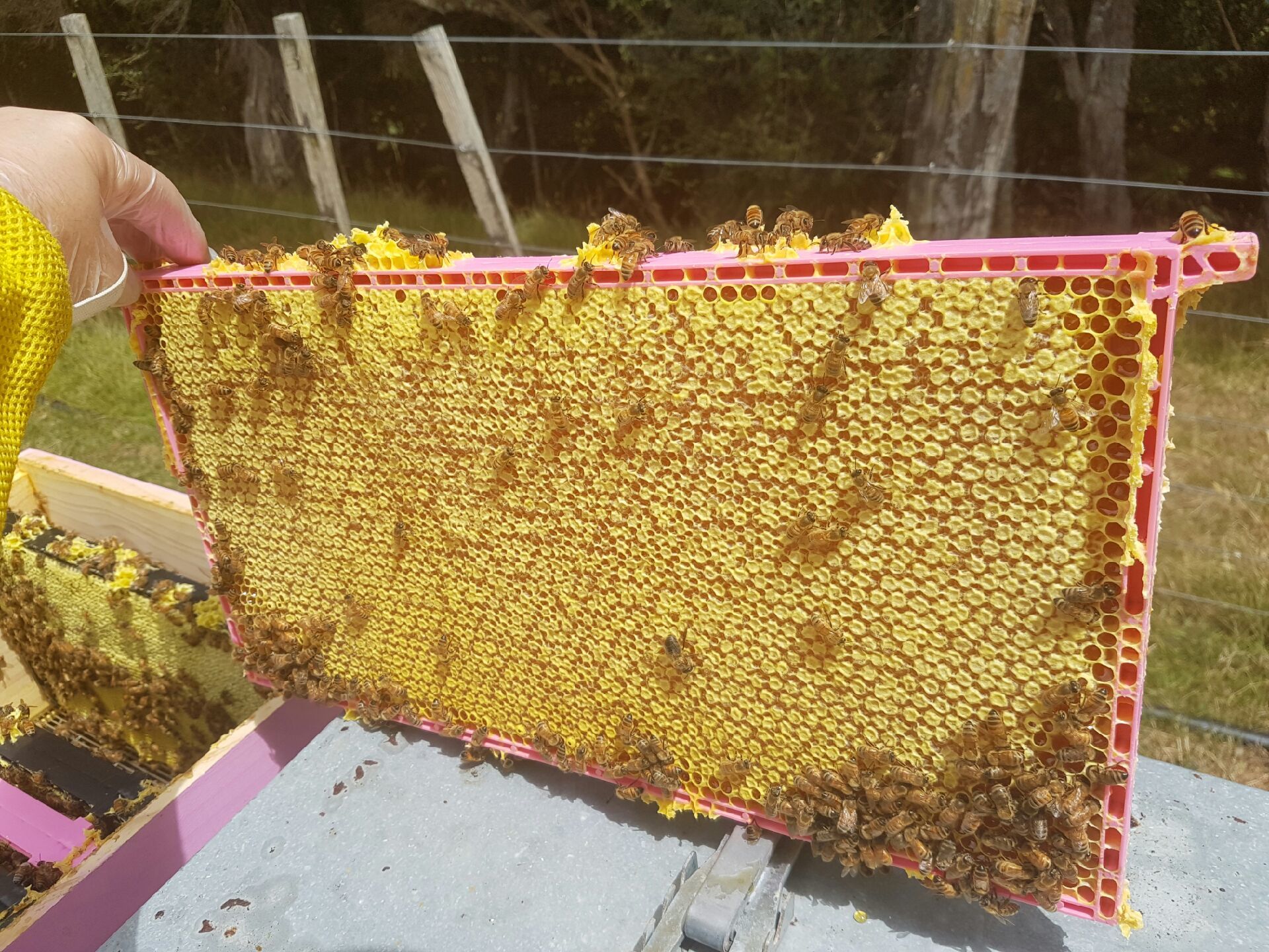 Field tested and proven by beekeepers throughout New Zealand, the new Beetek HoneyMax™ Frame is an evolution in honey extraction. The larger cell sizing (7.1mm compared to 5.4mm) allows honey to release more freely during extraction resulting in cleaner frames and more importantly improved yields. Extraction trials have shown an extra 110 grams of honey extracted per frame! With its eye catching pink colouring, the Beetek HoneyMax™ Frame is easily recognisable to ensure it stays in your honey boxes.